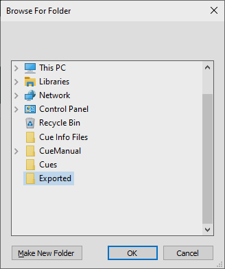 Om de folder te selecteren waar de ge-exporteerde tracks moeten worden opgeslagen klik je op de 3Dots knop in de ‘Folder to Export Tracks to:’ textbox. Je kunt nu middels de hieronder weergegeven folder selector een bestaande locatie aangeven of een nieuwe locatie maken.