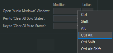 Het definiëren van de toetsencombinatie in ‘Track Exporter’ is eenvoudig. Selecteer de ‘Modifier’ (m.a.w. Ctrl, Shift, Alt of een combinatie hiervan) door de 3Dots knop te klikken in het ‘Modifier:’ veld zoals hieronder aangegeven. Voor de gekozen letter in in het ‘Letter:’ veld. Let op: De letters moeten kleine letters (dus Lower Case) zijn.