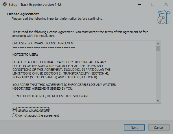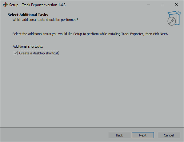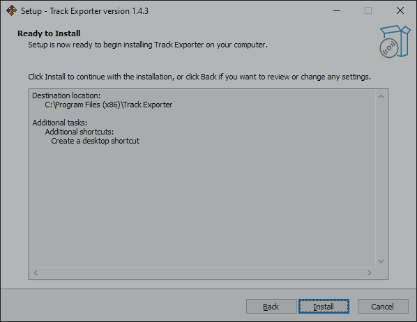 5) Je bent nu klaar om de Track Exporter te installeren. Klik ‘Next’.